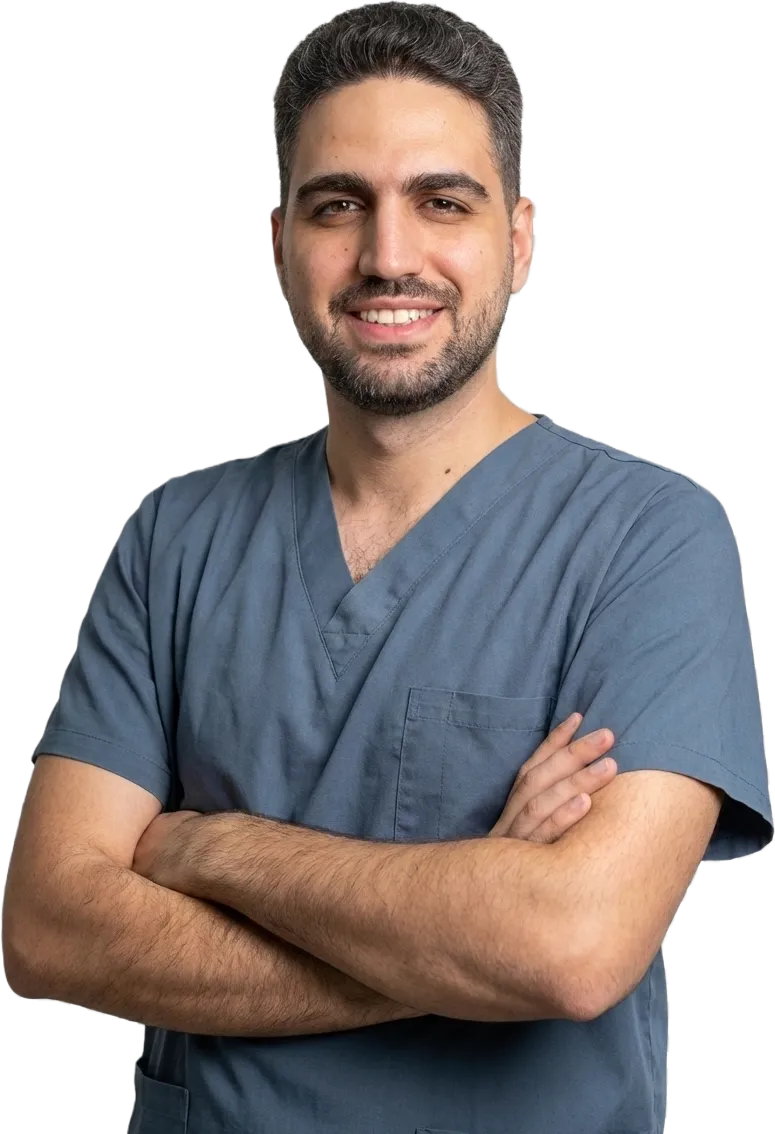 يا مرحبا بك! معك الدكتور علي معلا — طبيب أسنان اختصاصي بجراحة الفم والفكين، دبلوم في إدارة العيادات والمراكز الطبية